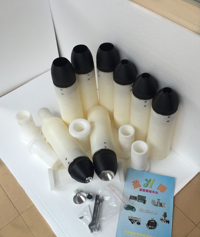 旋杯工作氣壓:0.2-0.4Mpa 、靜電輸出:60-70KV、成形氣壓:0.2-0.3Mpa 、涂料輸出:600c c /min 、耗氣量:0.9Nm/min 、 噴涂距離:250-400mm 。φ60 φ75