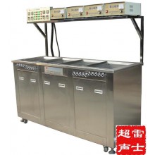 電解式陰極陽極雷士超聲波清洗機,該設備組成:超聲波清洗槽、鼓泡漂洗槽、防銹槽組成一體式三槽設備。超聲波發生器將工頻電能轉變成28KHz的高頻電信號,通過高頻電纜輸送到超聲波換能器上,換能器被加上高頻電壓后,產生強有力的超聲振動,在液體中迅速傳播,作用于超聲波清洗槽內液體介質中,產生每秒2.8萬次的振動,從而將工件器件附著的污垢震落,并同時通過正負極電解方式,達到清洗目的。設備具有時間設定、加熱控制、超聲清洗、電解、循環過濾、緊急停止等功能。