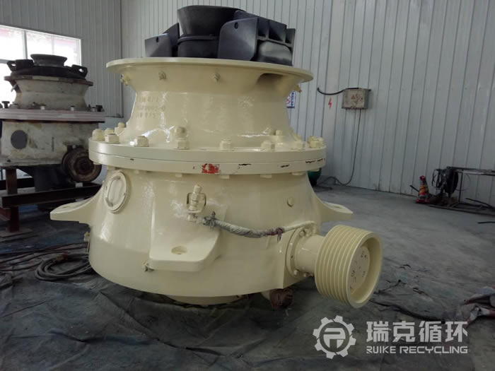 4. 設備情況:該設備原在河南某砂石廠生產線上工作,不久后由于生產線的需要,設備進行例行檢修。拉回公司后,經過專業技術人員的評測后,拆開檢修。發現內部架體村套,偏心村套完好,關節軸承,油封不需要更換。重要部位,動錐體以及上下架體合口都完好。其中,發現傳動部位基本完好,更換了傳動部的軸承以及密封。其他細小部位也都進行了比較仔細的檢查后,整機進行組裝試機,發現各部位性能都良好,最后噴漆。對于該臺設備,客戶可以放心購買,安心使用。
