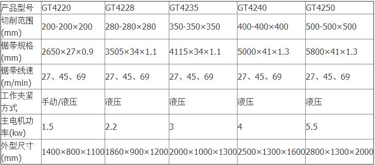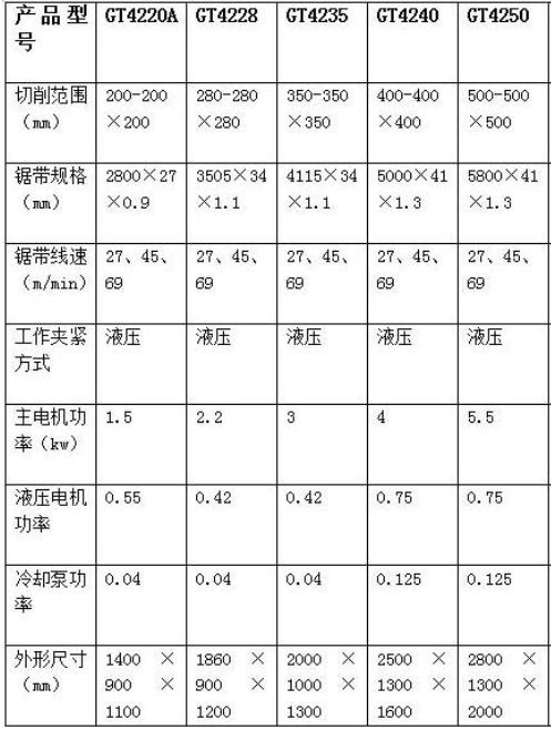 產品規格:GT4228液壓金屬帶鋸床