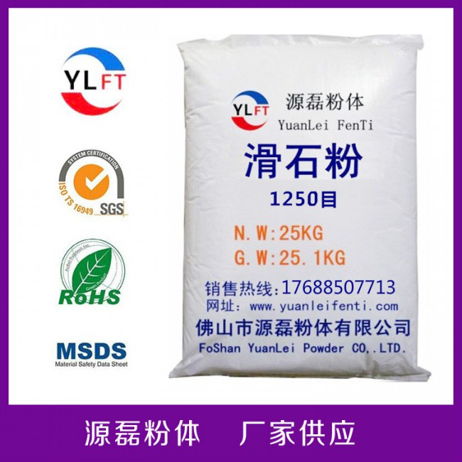 滑石粉應用于改良橡膠,塑膠,樹脂之壓模,壓延,押出,射出等加工性能,及可替換部分昂貴之(膠料)10-15\%來降低原料成本并提供其物性。在油漆,涂料方面,耐爆嗮,抗高溫,在紫外線照射下不變色,能長期保持原有的光澤與色彩,有較好的耐酸堿腐蝕的性能,且耐水性好,耐污染,耐老化性能較強,耐磨,耐蒸汽和化學穩定性,及較強阻燃性能。