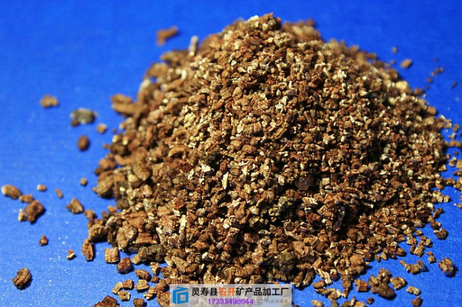 蛭石片經過高溫焙燒其體積可迅速膨脹6-20倍,膨脹后的比重為60-180kg/m3,具有很強的保溫隔熱性能。蛭石加