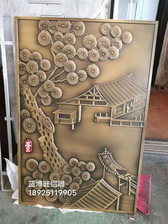 純銅純鋁雕刻屏風背景墻,銅浮雕壁畫以其特有的金屬性質,解決了木制品的缺點,能夠經受戶外的風吹雨淋而不變質,能夠有效的防火防潮防蟲蛀,好的耐候性,10年不變色。純銅雕刻屏風背景墻,銅鋁浮雕壁畫經過精雕細琢,既呈現出現代氣息,又不失古典韻味,融中西文化于一體,呈現出古典與現代的美感。