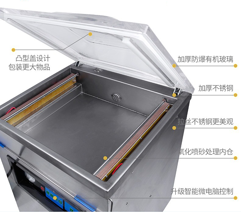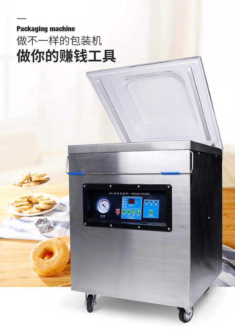 真空包裝機適用于食品行業可包裝火腿、肉類、魚干、雞鴨肉類、醬制品、調味品、果脯、糧食、豆制品、化學制品、藥材、農產品、電子、五金零件等商品進行真空后充惰性氣體包裝,經抽真空包裝后的物品可防止氧化、霉變、蟲蛀、受潮、延長產品儲存期限。
