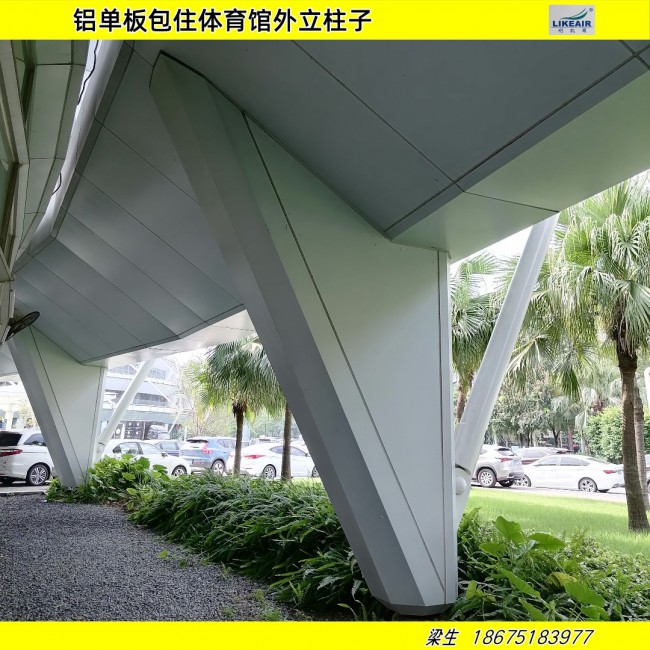 2. 包柱鋁單板作為惠州室內外各種造型柱子的定制產品,其環保性能及造型工藝性得到大量使用,可以加工成不同形狀,不同規格的包柱鋁單板產品。