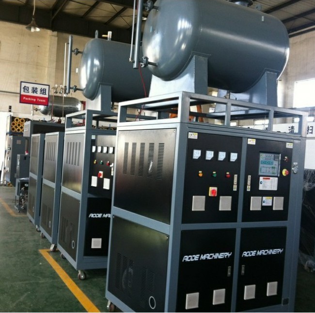 油溫機的優點是控溫范圍大,熱確定性好,但需發媒介成本,有油污,熱傳導效率不如水溫機,我們新研制的機型,采用進口的板式熱交換器,具有結構緊湊,升降溫速度快,控溫精確的優點。我司油溫機溫控可達350