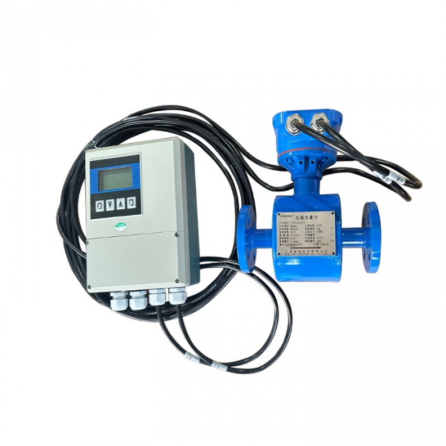 分體式電磁流量計由傳感器和轉換器兩部分構成。它是基于法拉第電磁感應定律工作的,用來測量電導率大于5μS/cm導電液體的體積流量,是一種測量導電介質體積流量的感應式儀表。除可測量一般導電液體的體積流量外,還可用于測量強酸強堿等強腐蝕液體和泥漿、礦漿、紙漿等均勻的液固兩相懸浮液體的體積流量。