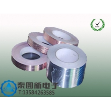 【說明】:該產(chǎn)品由純度高于99.95%銅箔、壓克力壓敏膠、離型紙組成。常見的規(guī)格:基材厚度:0.007mm~0.075mm,膠粘厚度:0.015mm~0.04mm