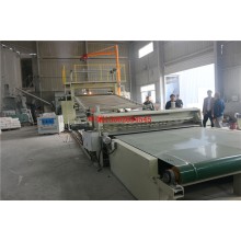 加壓式密煉機 → 自動不銹鋼提升機→ 強制喂料機 → GLD單螺桿 →2500mm成型模具 →三輥擠壓表面處理→牽引機→板材電暈處理 → 切割機 → 堆放 →油壓發泡機