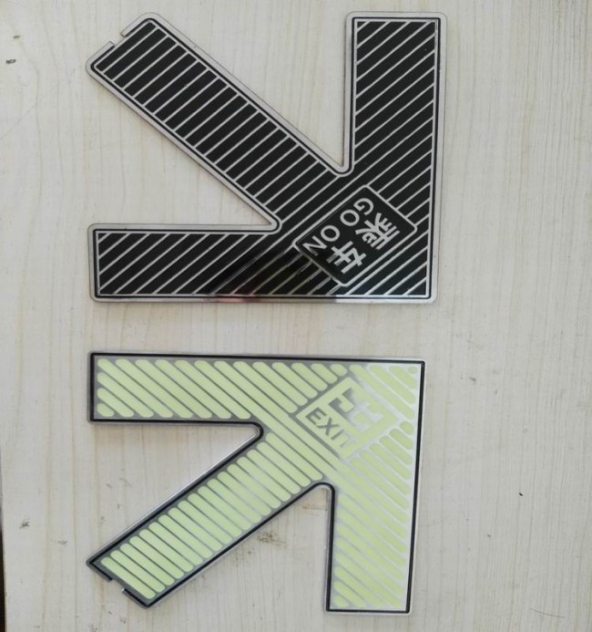 杭州慧海化工有限公司自主研發的蓄光地鐵導向標識。吸收可見光3-5分鐘??稍诎堤幊掷m發光12小時以上。且發光效果可持續循環使用20年以上。在地下軌道發生停電或火災等緊急情況下,可以指引人群疏散逃生。該標識選用我公司超長余輝發光粉制作,吸光能力強、持續發光時間長、安全、環保、節能、五毒、無害無輻射。同時該產品已取得蓄光安全標識,消防產品檢測報告。