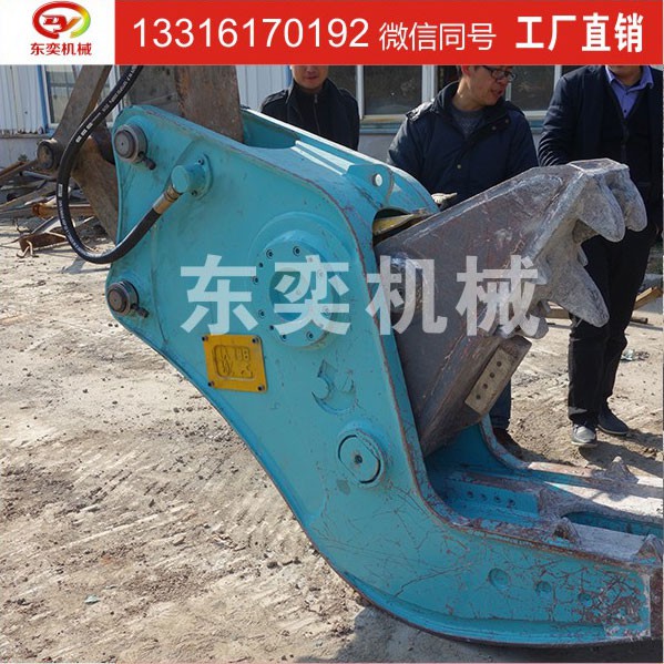 力道強勁=超高效率1、工作效率是破碎錘的二至三倍。 2、粉碎鉗可以出色的完成一系列作業:即將鋼筋從混凝土塊中分離出來,折彎并裝載到卡車上,從而明顯的提高了工作效率。 3、作業完全機械化,安全又省時。 大開大闔=提高效率1、咬合密實間隙小,操作靈活。 2、大開口設計,工作輕松、方便。 3、裝有鋼筋切斷器,粉碎鉗可以同時進行兩項作業,粉碎混凝土并切斷暴露的鋼筋,使破碎作業效率更高。 堅固耐用=節約成本1、采用瑞典高硬度輕質鋼材,堅實無比! 2、充分了解中國市場使用習性,針對磨耗部件及結構件重點強化,壽命加倍! 3、顎齒制成了特殊形狀用以牢固的固定混凝土塊,楔入并粉碎,以便進行快速軋碎。顎齒非常堅固,具有高耐磨性。 輕便快捷=創造效益1、拆裝容易,油路設計,不僅油缸速度加倍,并且可與破碎器通用,一機多任務。 2、低噪音無振動,滿足環保要求,適合城市與高新園區的拆除工程。 3、液壓油缸配有護蓋,用以阻攔混凝土塊和鋼筋的飛濺碎屑。