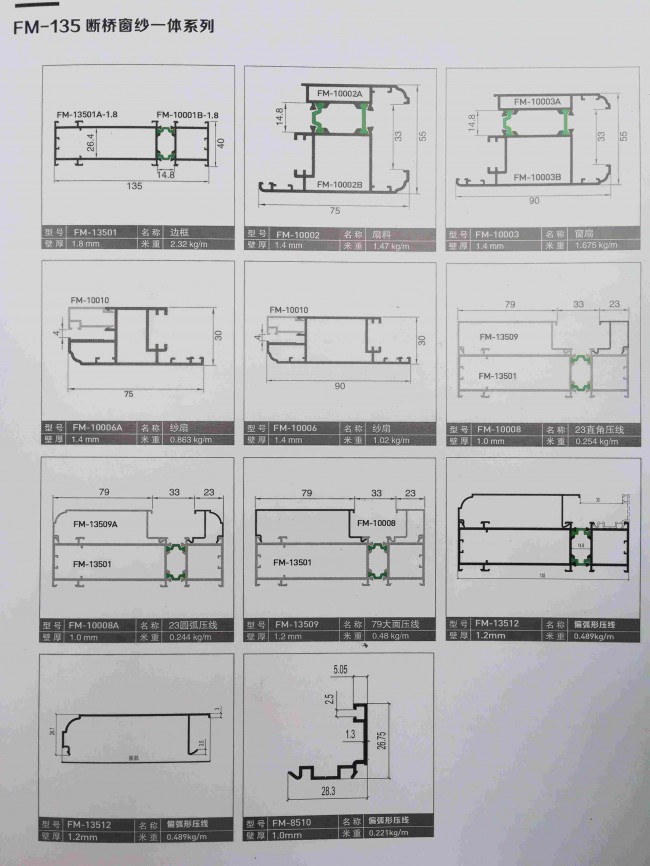 | 產品規格: | 135隔熱斷橋窗紗一體門窗鋁材 | ||