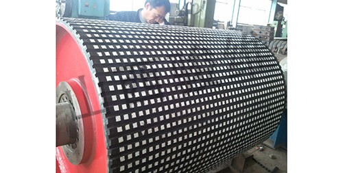 適用于傳動輪和被動輪,陶瓷表面為凸點設(shè)計,增加了滾筒與皮帶的摩擦力,可防止打滑與跑偏,每排陶瓷間均有排水溝加強(qiáng)排水功能,陶瓷的耐磨性與獨(dú)特的設(shè)計延長滾筒的使用壽命,并采用現(xiàn)場冷粘膠的方式,縮短了工期并減低了維護(hù)成本。
