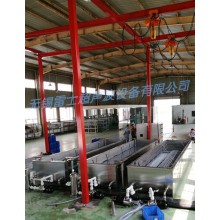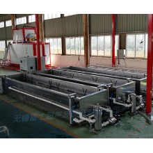 3.噴淋漂洗使用時,將管材平鋪于斜面擺架上,針對貴司管材直徑細,斜架上端布置高密度噴頭,以保證沒跟管材內部都能噴到水。斜面傾角20度。利于瀝水。選用高壓噴淋泵,大功率長時間噴淋作業。可以抽取槽內水沖洗,也可以接外水沖洗。整機設有排水口,也可借助高壓泵排水。整體管材選用均為2寸不銹鋼管材。