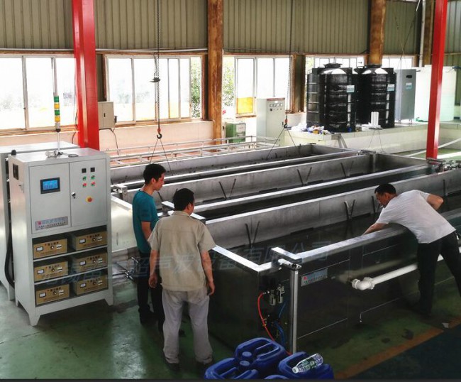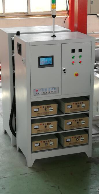 1 .往清洗槽和漂洗槽里加水,加的水最少要浸沒加熱管。打開電源總開關柜里的超聲開關,加熱開關,噴淋開關都要打開。手動開啟加熱,設定好所需工作溫度。