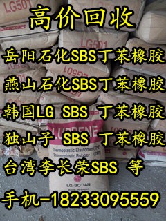 高價回收庫存過期的岳陽石化,燕山石化,獨山子,LG公司,美國科騰,臺灣李長榮,寧波科元,茂名石化等公司生產的所有型號的熱塑性丁苯橡膠sbs橡膠顆粒。24小時回收熱線-18233095559 戴先生