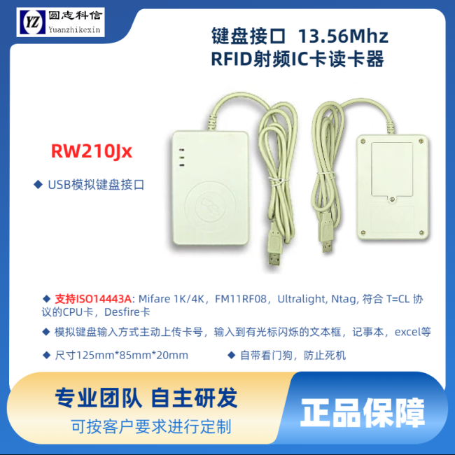 RW210J-XX | USB接口 | · ISO14443-A: · 注對于7字節(jié)卡號目前只輸出其中一部分,如果有需求可定制 |