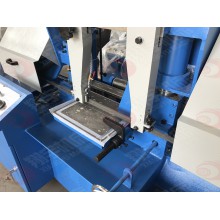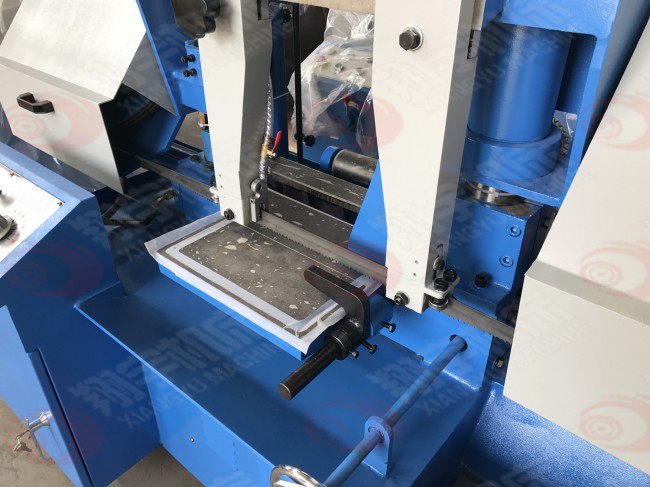 根據(jù)切割角度要求分為角度鋸床(能鋸切角度90度45度)無角度即90度垂直切割。1、鋸切角度調(diào)整:如要鋸切45度角內(nèi)任一角度時(shí),先放松固定把手,然后將鋸弓順時(shí)針方向推轉(zhuǎn),對(duì)準(zhǔn)本座上之角度標(biāo)尺上您所需要的角度刻度上,在鎖緊固定把手。2、當(dāng)您調(diào)整好鋸切角度時(shí),小虎鉗角度亦需跟著調(diào)整放松虎鉗固定螺絲,再將小虎鉗推向大虎鉗,使小虎鉗與大虎鉗角度相同,在鎖緊固定螺絲后即可。